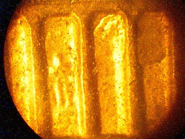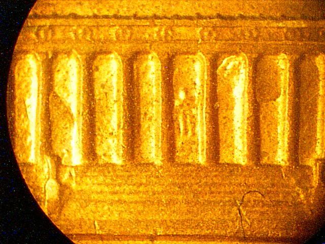 Bob, it is very heavily abraided around the entire profile, down to the collar, and nearly to the date,, in front. The field on the rev is also heavily abraided below the memorial bulding. From the severity, it must have been a miltiple strike. I have another coin similar to this one, but the bay, (bay 1), has what looks like it had shattered, similar to this one. It was an older coin. I'll have to look for it.