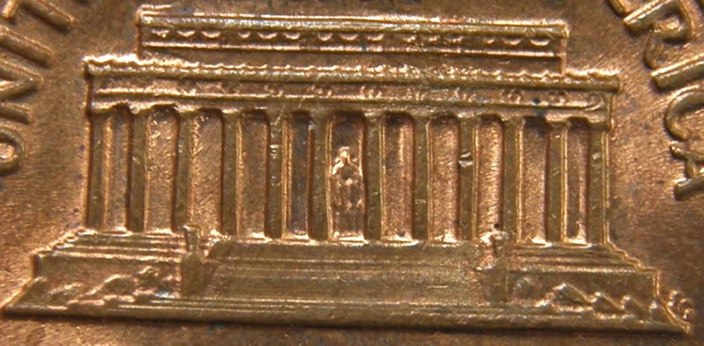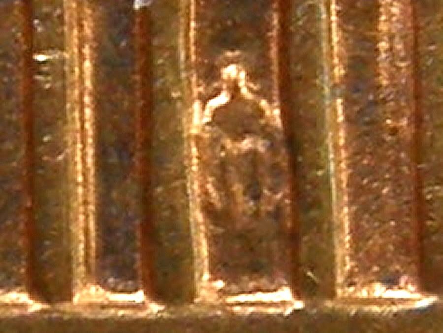 Bob, in the first photo, in the area of the knees, it looks like it might be a slight shift, N/S, which would correspond with the doubled, (apparent) image. Could the die shift have been vertical with respect to the bay/columns, as opposed to the (normally), lateral shift?If this don't make sense, not to worry. That is the dtory of my life.