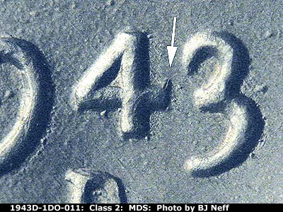 Light extra thickness can be detected on the date. The serif on the arm of the 4 digit has notching, but this may only be seen on MS coins.