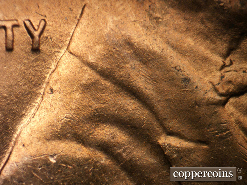 Pair of NE die scratches from lower lapel. NW die scratches on collar. Concentric die scratch in and around ear. E/W die scratch from W in WE. Small die chips in front of nose. Reverse is MDS