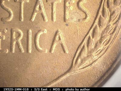 Light N-S die scratches show through the TES of STATES and CS of AMERICA. Reverse is LDS.