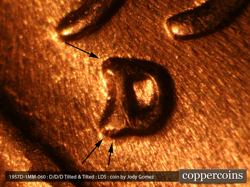 Split serifs with tripling showing on the lower serif. This variety is coupled with 1957D-1DO-019.