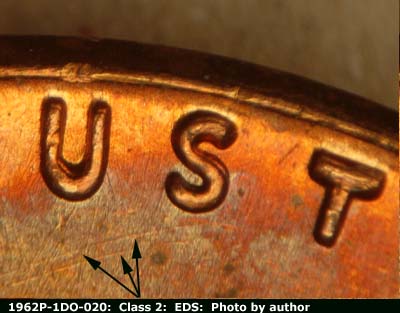 Heavy die scratches under the US of TRUST. Heavy die scratches under IN. Die scratches run NE-SW through LIBERTY.