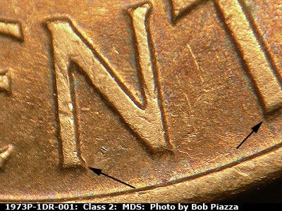 A light spread can be seen on OF AMERICA, the designers initials, and ONE CENT. Very nice notching on the R of AMERICA.