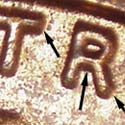 A light spread to the center of the die can be seen on the tip of the 3 in the date, and as a split on the R of TRUST. Light extra thickness can also be seen on TRUST and the date.
