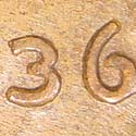 Doubling shows on the outside edge of the 6 of the date. This die is also listed as 1936P-1DR-002.