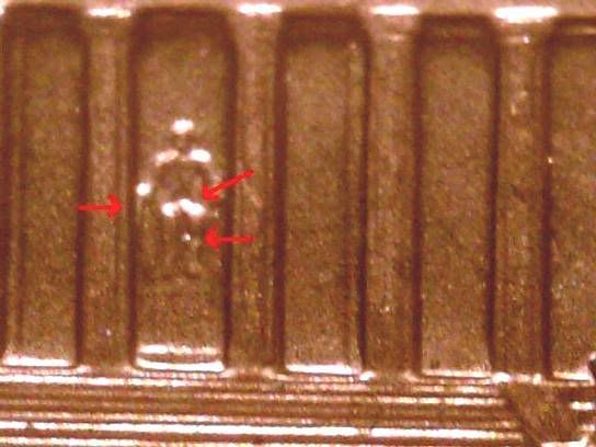 I have seen those ones that look like the doubling on the inside of the bay above the step but I think that's actualy where they polished that corner and it looks like doubling. It looks like the corner of the bay is filled in. It's because they polished that corner on the die or it erroded from use.
