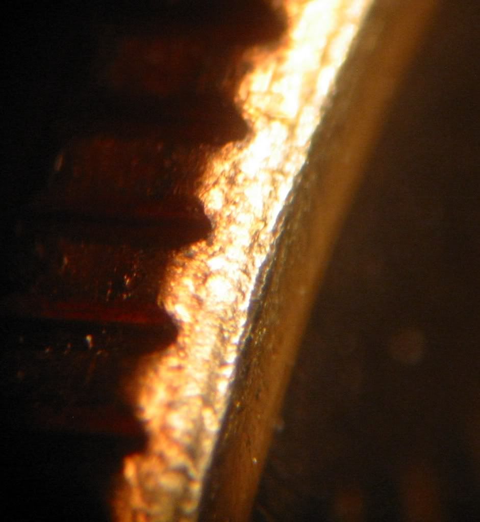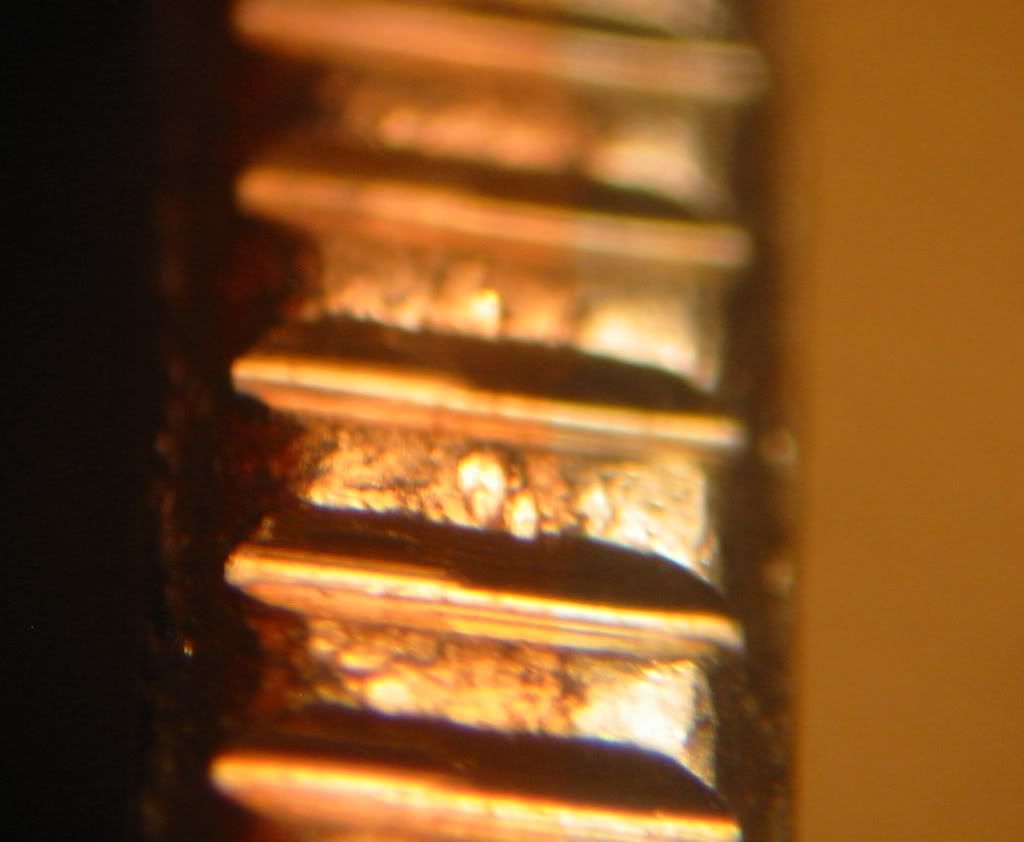I haven't been looking through coins much lately (though I did find a 1970S small date from change!!) but came across this Virginia quarter with an unusual color. It looks golden or brassy, but it is only on the reverse side. The edge of the coin does not have a definite clad layeron the reverse side, though under the microscope it appears to have a thin layer of something. The pictures aren't the best but give some idea of what I am talking about. Any ideas?
