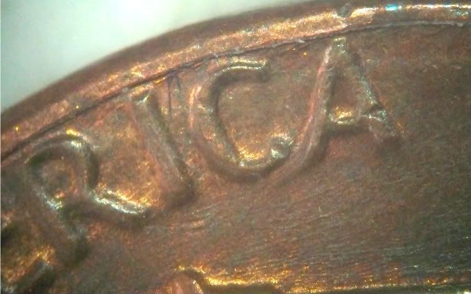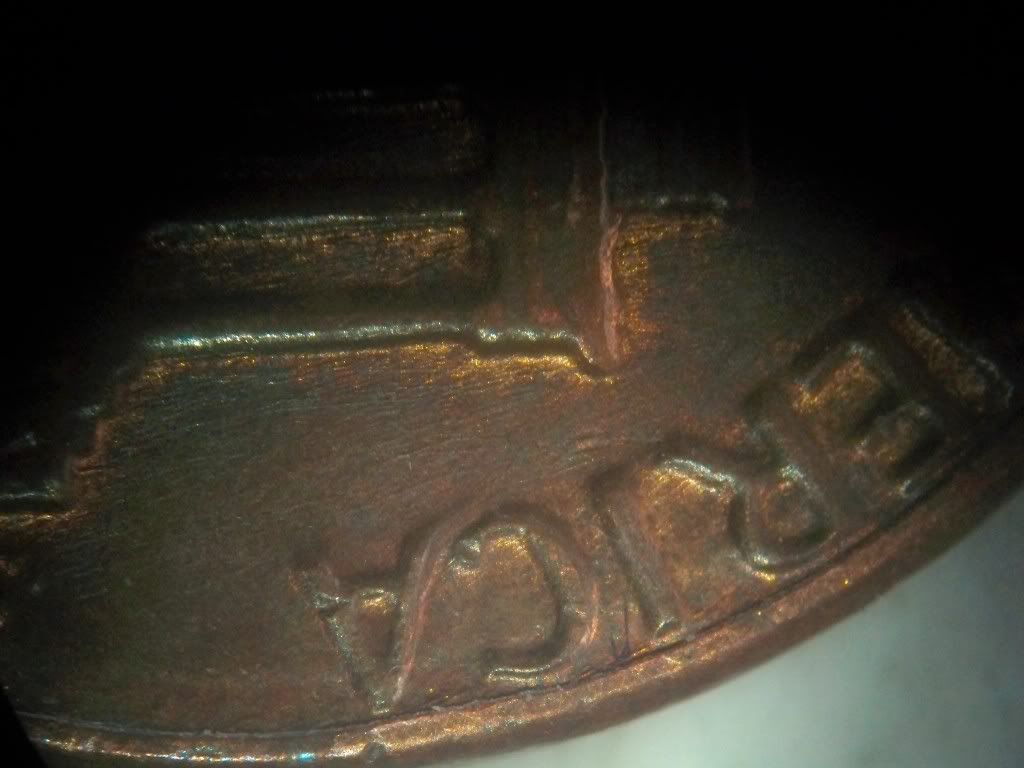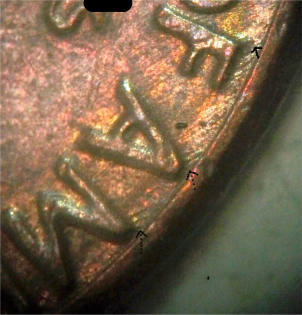 Tery, my impression is that what you are seeing is actuallt remnants from a clash. The "trail" you see, coming off the "A", is not a trail. It is in the area where a clash remnant would be seen, if not completely "Polished away". Don't take this as "gospgel", because I don't see like I used to. In fact, I don't even look the same.