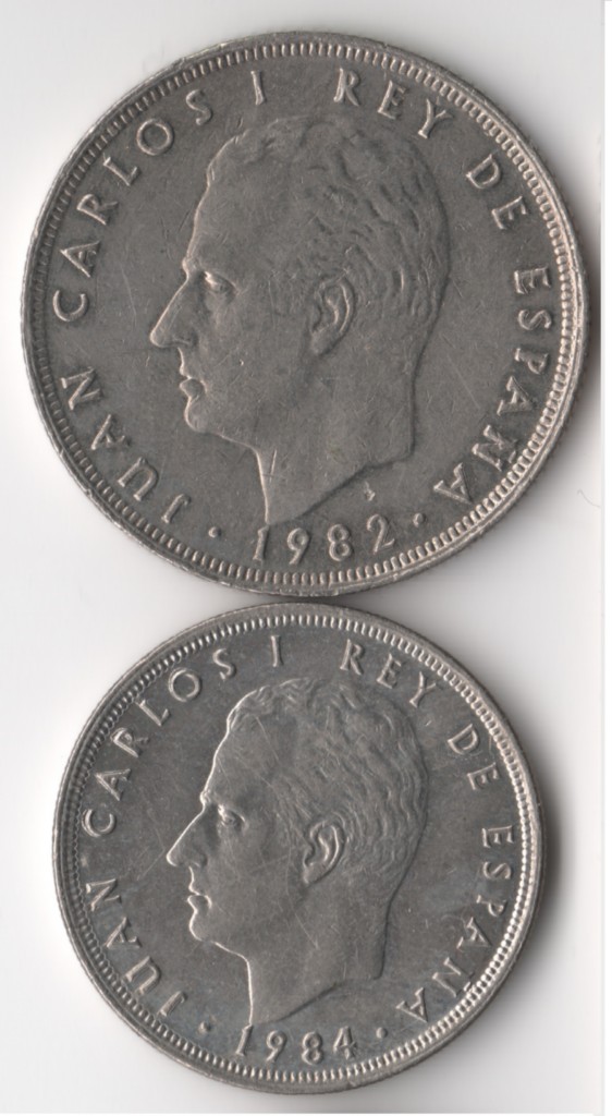 Here's a couple of foreign coins with machine doubling. The top one has most the lettering except for Juan Carlos, the bottom is mainly on Juan Carlos's lettering.