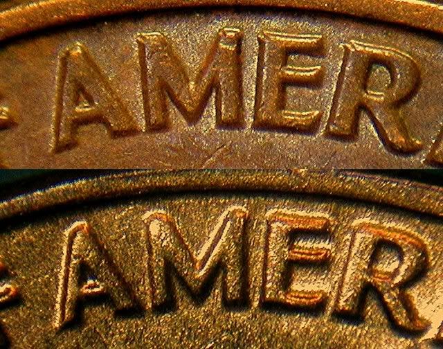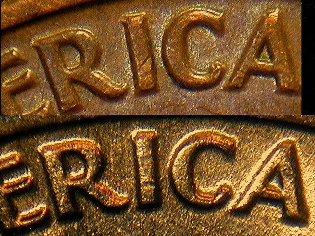 BJ, can you tell me if a ding, ( for example, on the "I" of America, the top photo has a good sized ding on the mid, to low, area ), will this tend to wear, in circulation, to the point that it should dissapear? I nquire, because I don't see the remnants of the ding. Instead, there are other, different dings. Could this indicate a change of the OBV die, at some time after the ding, and prior to the time the coin in question was struck? I also noticed the same things on "UNUM", and "CENT