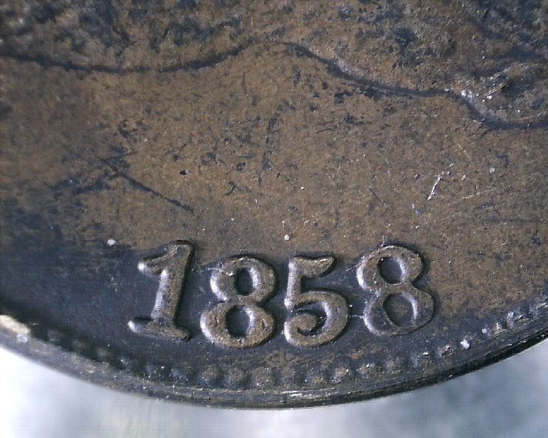 I am still hoping it is a clashed die 1858, maybe got walked on by some Confederate or Union soldier.