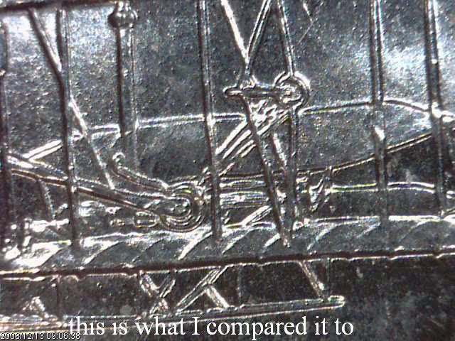 I'm still searching quarter rolls -- but have been in a drought lately -- doing a lot of searching and little finding. In the last box I searched, this one popped up in the 2nd to last roll. Not a bad DDO for my first find of 2009. This is a 2007 P Montana quarter - having a nice spread in this doubled earlobe. As 'earlobe' DDOs go, this is one of the better ones. It is very easy to spot.