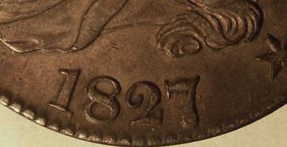 Here is another neat overdate from this series. The 1827/6 O-101