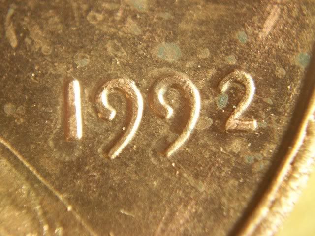 Also...If you take a look at other 1992s, you will see that the hair curl on the upper portion of the beard is actually part of the design. It shows up much better on uncirc or EDS coins.