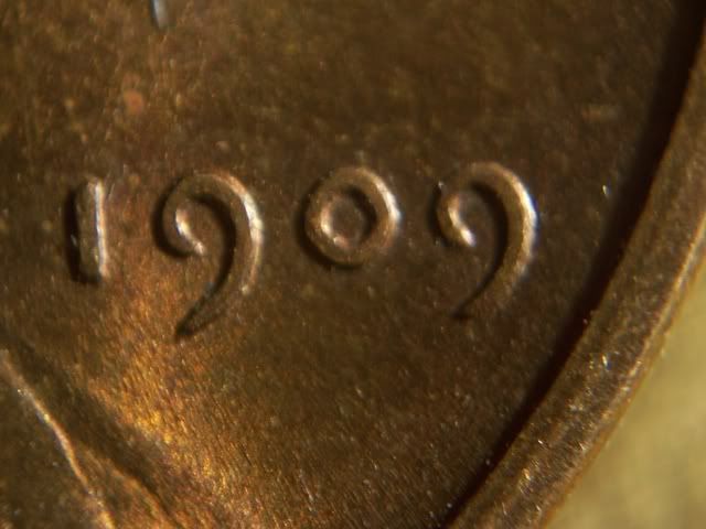 The VDB would not be where you have described or photoed. The VDB on the 1909, if it has it, would be on the reverse near the rim at the bottom.