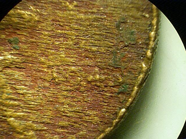 I checked the obv/rev of the coins to see if there might be a letter that might possibly make that type impression, but came up empty. So I posted them The two, side-by-side were to show the letter, and the same letter on the normal strike. Some of the "T"s shao a broken leg, or maybe some other type damage. Not all the roll has these marks. Most have some damage, but the few that have a clean edge have littl "bag marks, or maybe "tot-bin" marks