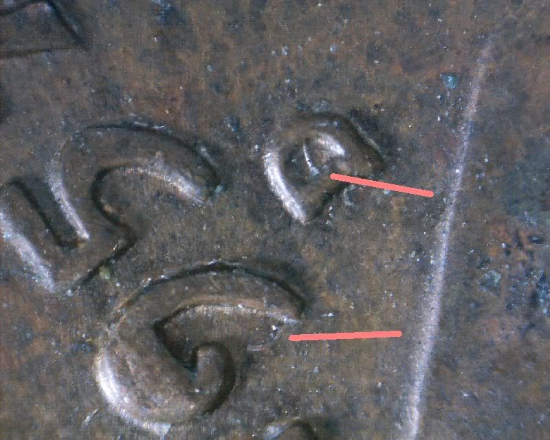 This coin appears to have a minor split in the lower serif... Of course my vision acts up between the lens lines... LOL!!!