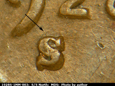 An extra right-curving horn sticks out of the top of the primary mintmark indicating an extra upper curve.
