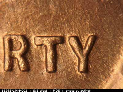 NW-SE die scratches show in LIBERTY. A cluster of N-S die scratches shows behind the back of the head.