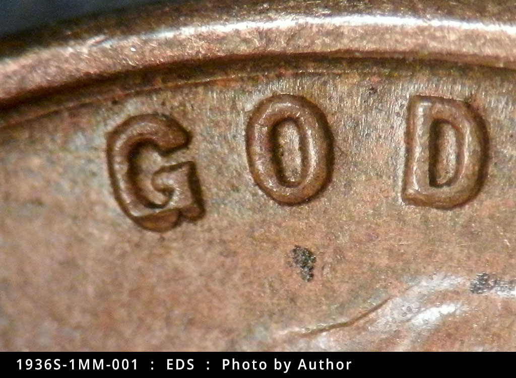 This variety shows an extra lower serif to the northwest of the lower serif on the primary mintmark, and it shows just a little bit of an extra curve to the west.