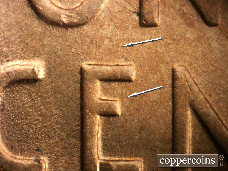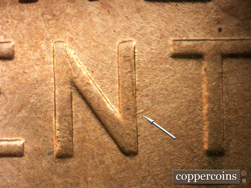 Light N-S die scratches between the motto and the N of ONE. A Short E-W die scratch from the right leg of the N of CENT. Reverse is EMDS.
