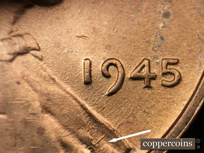 Curved generally NE die gouge through 1 in date. Multiple concentric die gouges across lower jacket. NE die scratches from top of Y in LIBERTY.