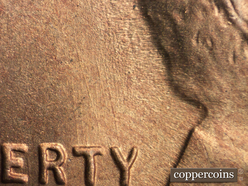 N/S die scratches through 19 in date. NNW die scratches from TY in LIBERTY. NNW die scratch connects hair to E in WE. N/S die scratches on neck. Reverse is MDS.