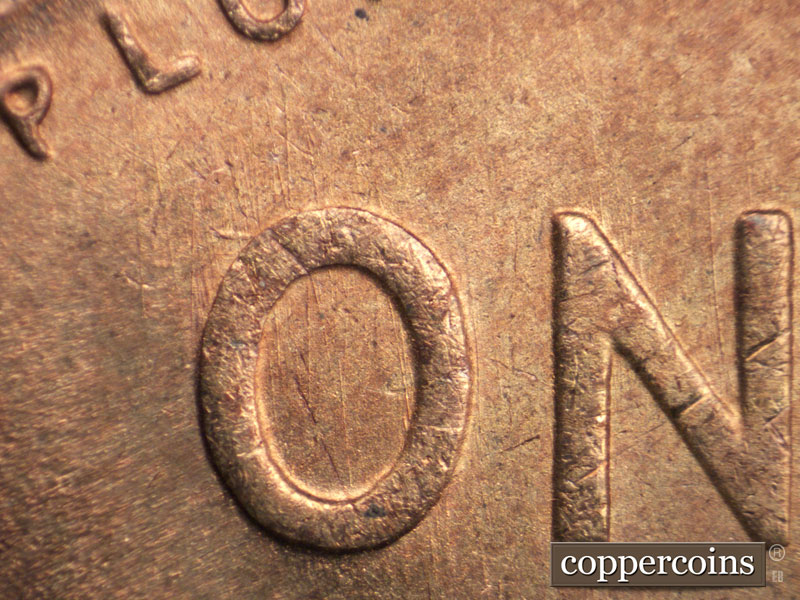 Light die scratches in O of ONE. Die dot under M in UNUM. N/S die scratch In upper N in ONE. N/S die scratch in lower N of CENT.