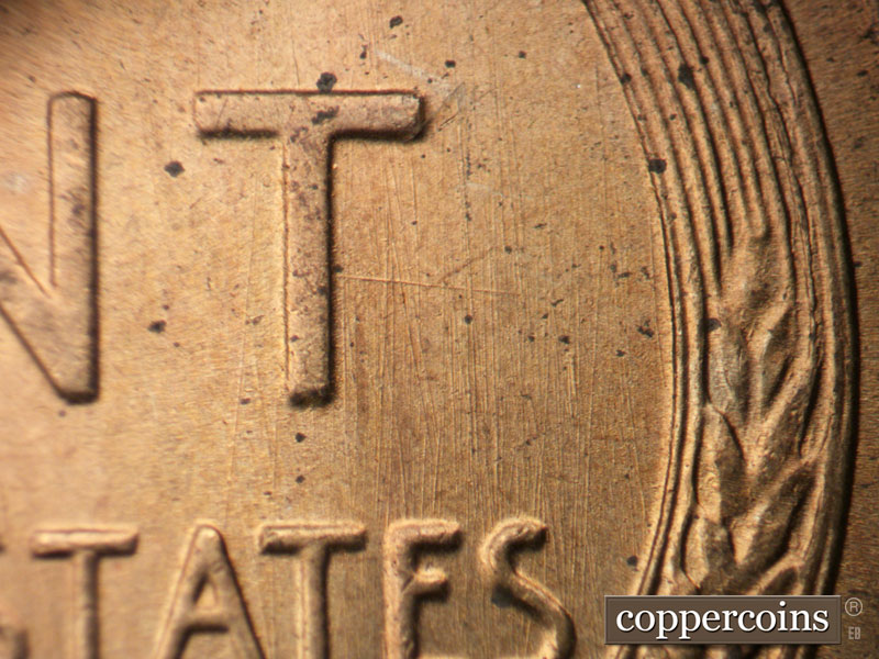 Generally N/S die scratches cover reverse, see photos for exact configuration. E/W die scratch from T in CENT.