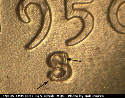 A die gouge (dot) above the last S of STATES. A small die gouge inside the lower C of CENT. Reverse is MDS.