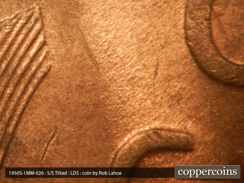 A light die crack can be seen above VDB. Light die scratches run N-S in front of the collar.