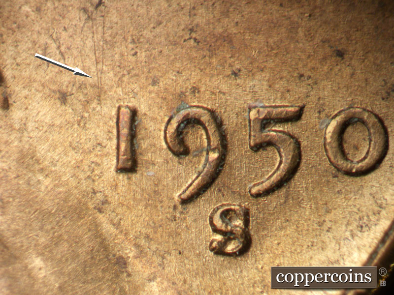 N/S die scratches cover most of obverse, see photos for exact configuration. Die scratches form a V NW of 1 in date. SSE die scratches through ST in TRUST. Reverse is MDS.