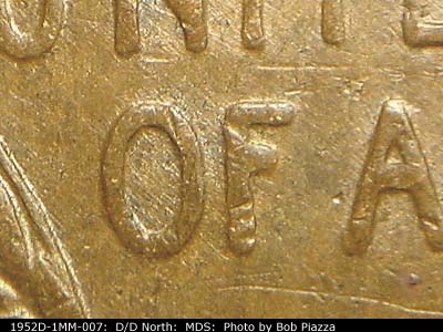 A bulge to the north and west, a light extra lower curve inside the primary mintmark and an extra lower serif show on this variety.