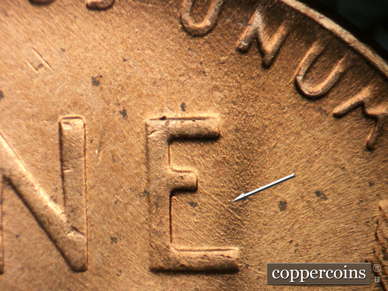 Crossing die scratches in middle of E in ONE. Die break in T of CENT. SE die scratch through last A in AMERICA. SE die scratches around O in OF. WNW die scratch from O in ONE to RIM.