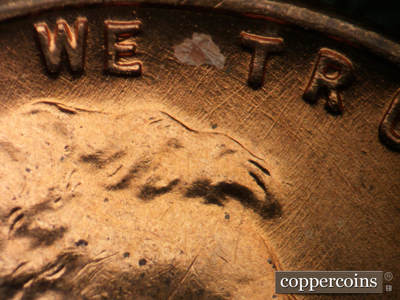 Crossing die scratches cover most of obverse, see photos for exact configuration. Die clash behind neck and in front of throat. NE die scratch from chin. Reverse is MDS