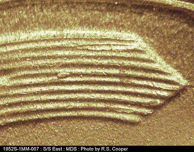 Three long die scratches from date area that fade out next to the face. Two gouges show next to rim by the lower bust area. Die scratches show behind head and around LIBERTY in a NW-SE pattern. One die scratch from Y runs N-S.