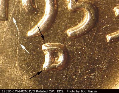 A very nice and sharp rotated repunched mintmark. Strong and deep splits show on both serifs.