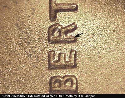 Split serifs and a spread on the lower curve show on this repunched mintmark.