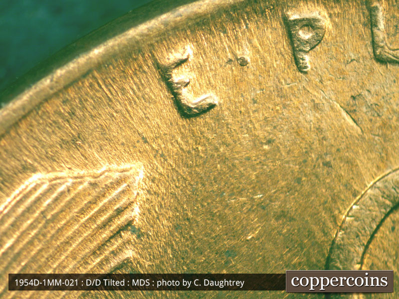 Criss-Cross die scratches under E. PLURIBUS UN; diagonal die polish lines through CEN and OF AM