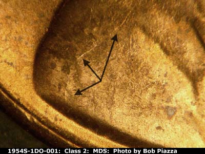 Reverse Die-002 Shows light die scratches between the D of UNITED and the first S of STATES as well as between the E and R of AMERICA. Reverse is MLDS