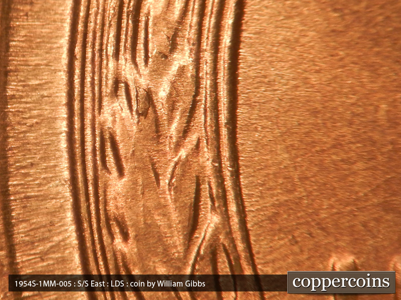 Reverse die changed since MDS. A small die chip shows in the upper left wheat grains. A die crack runs vertically through the right wheat grains. Reverse is LDS.