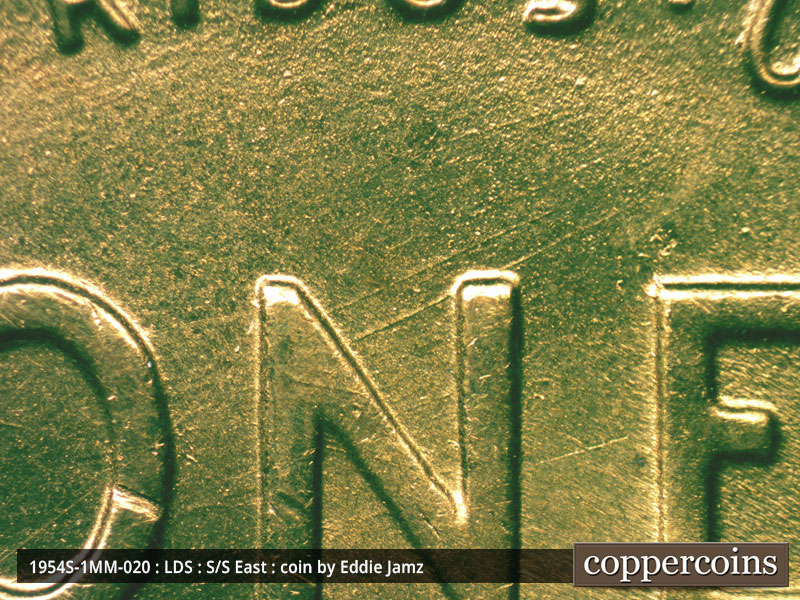 ENE die scratches above O of ONE. NE die scratches from to of N of ONE. Die break in wheat stalk E of S in STATES. NE die scratches between D and S of UNITED STATES. Die break left wheat stalk W of O of ONE.