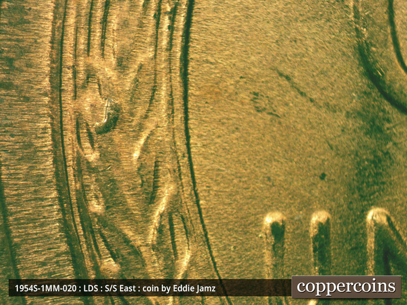 Die crack on shoulder. E/W die scratches in field above LIBERTY. Die gouge between IN and head. Die crack across forehead. E/W die scratches coming from chin. Reverse is LDS