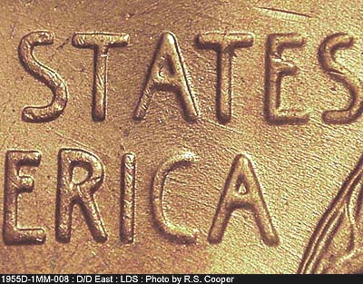 A few light die chips on BER in LIBERTY with hub doubling showing on B & E that is common on many 55-D Cents (Master Die). Die crack in hair.