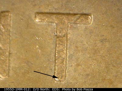 A light horizontal bar shows to the north, and a light extra verticle bar show inside this repunched mintmark.