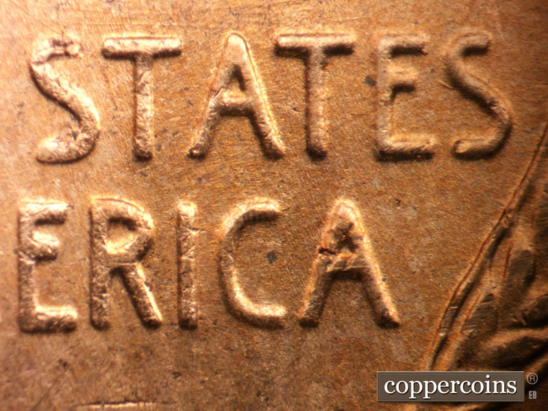 Die pitting under second U in UNUM. Multidirectional die scratches through NT in CENT. ESE die gouge from lower I in UNITED. SE die scratch through C in CENT.