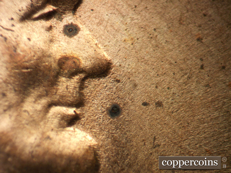 NE die scratch from throat almost worn away. SW die scratch under LIBETY almost worn away. Die pit under B in LIBERTY. Reverse is LMDS