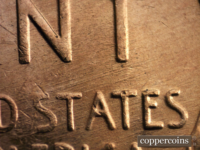 Numerous heavy die scratches through CENT See photos for placement. A die chip and crack in the lower left wheat grains. Die break upper left wheat. NE die scratches through STATES.