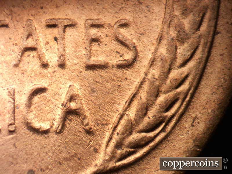 Die dot east of lower leg of E in ONE. NE die scratching through AT in STATES and C in AMERICA.